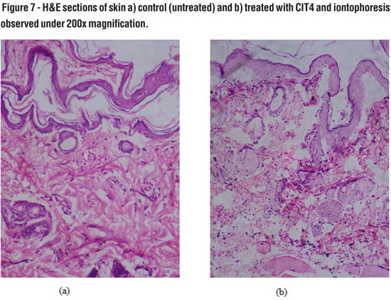 The optimized formulation CIT4 and optimized iontophoretic conditions (0.5mA/cm2 and 3:1 on/off ratio) were applied to rat dorsal surface and histological studies were conducted.
