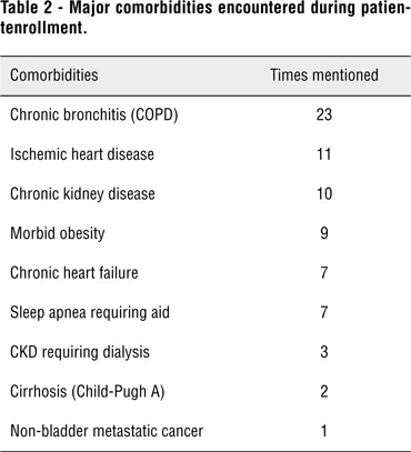 Contra-indication to general anesthesia or epidural anesthesia, due to a severe general state or to severe comorbidities can hinder surgical therapies. For patients with urothelial bladder cancer that are unfit for surgery, radiotherapy associated with chemotherapy remains a possible alternative (3,6,7).