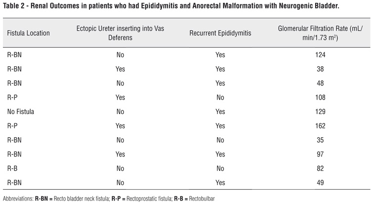 Keywords: Epididymitis, Anorectal malformation, Neurogenic Bladder, Renal Injury