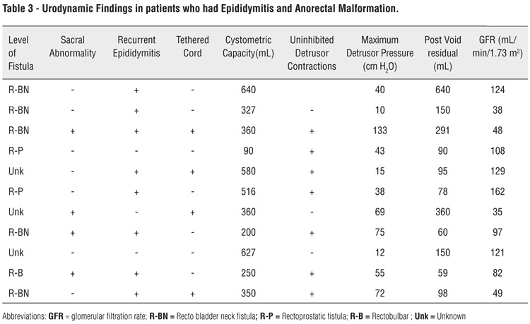 RESULTS: Twenty-six patients were identified with documented episodes of epididymitis. Renal injury was noted in five patients (19%), all of whom were diagnosed with neurogenic bladder (NGB) several years after anorectoplasty. NGB was found in ten patients (38%) in our series. Ectopic insertion of ureter into a mesonephric ductal structure was discovered in five patients (19%). Twelve patients (46%) had recurrent episodes of epididymitis, with seven of these patients (58%) being diagnosed with NGB. Two patients in the pubertal group presented with a history of epididymitis and complained of ejaculatory pain.
