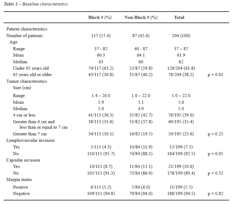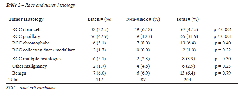 among non-black patients (p < 0.001) (Table-2). Clear cell RCC was