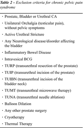 Pain Syndrome (CPPS), Category III, is based on symptoms of chronic pelvic