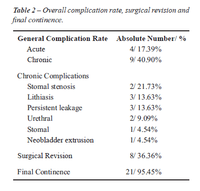 (13.63%). The overall surgical revision was 36.36% and final continence