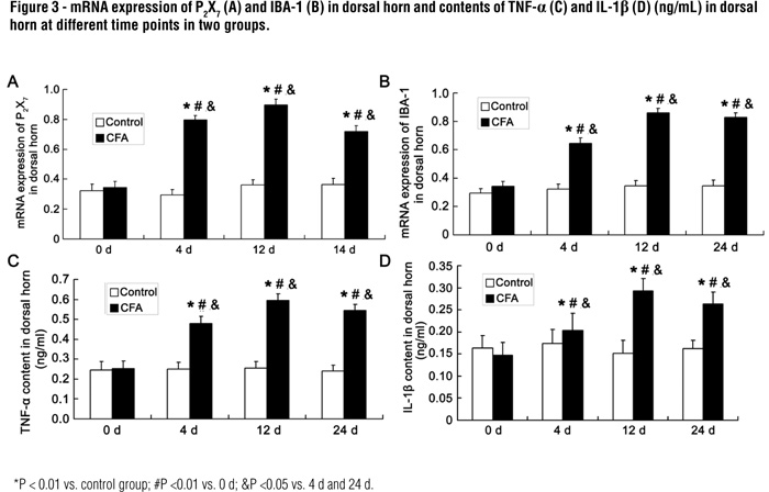 mRNA expression of P2X7 and IBA-1 in posterior horn
