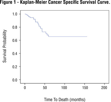 Using SPSS 17.0 we constructed Kaplan Meier probability curves for overall survival and cancer specific survival.