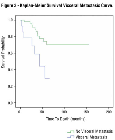 In previously reported studies with a more heterogeneous subset of patients, overall survival in men with metastatic disease was found to range from 5 to 7 years (11-14). Only 62.7% of our patient population was alive at 5 years. In spite of hormonal therapy, we demonstrated a median time to PSA rise above nadir of 6.8 months in this cohort. Ultimately, our findings reaffirm the notion that despite current therapies, those with distant metastases involving lymph nodes and/or visceral organs at the time of presentation have considerably poorer prognoses underscoring the importance of PSA screening in our male population.