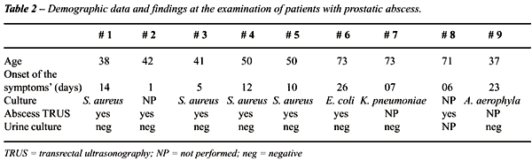 abscess after a prostatic biopsy. All were treated with parenteral antibiotics.