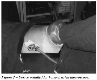 hand-assisted in the umbilicus. The device (hand-port) is installed according