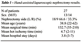 submitted to hand-assisted laparoscopic nephrectomy were retrospectively