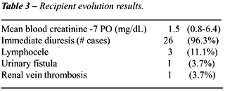 nephrectomies, left kidney was withdrew in 18 donors (66.6%), and right