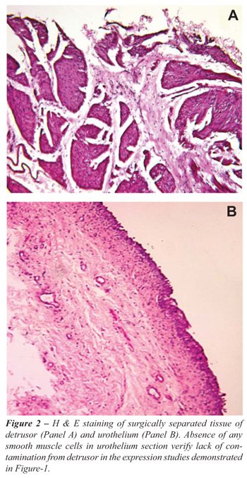 in separate tissue of urothelium and detrusor muscle from human bladder.