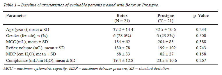 units. Botox was used for the first 22 patients, and Prosigne for the