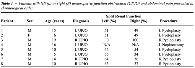 pain and UPJO (5). All 3 children had abdominal pain and bouts of non-bilious