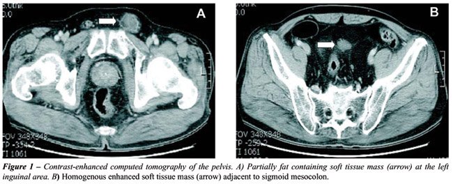 from the inguinal area, which was managed by laparoscopic procedure. In