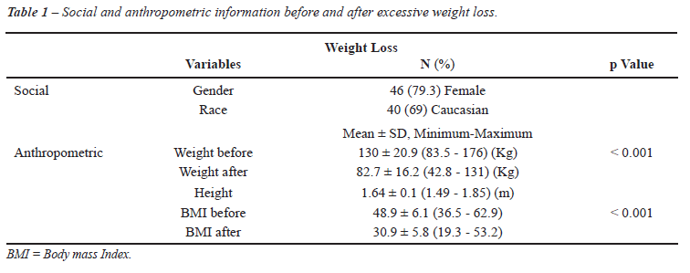 = 50% loss of weight excess. There was no difference between the frequency