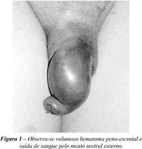 hematoma peniano e uretrorragia (Figura-1). Com hipótese diagnóstica
