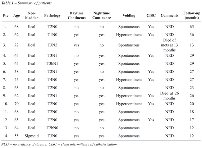 cystectomy (GTSC) with neobladder between 1997 and 2002 were retrospectively