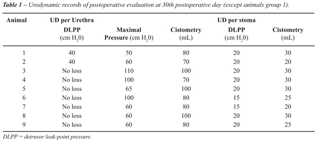 study. No stoma leakage was observed in 7 animals at high bladder pressures
