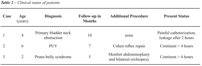 (3 patients) was 7.2 months. Two patients remained continent up to 4 hours,