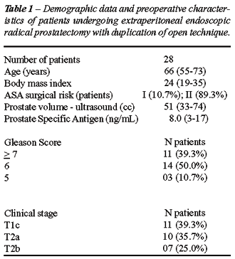 technique. In Brazil, laparoscopic radical prostatectomy has been developed
