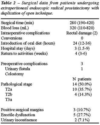 P, et al.: Extraperitoneal laparoscopic radical prostatectomy. Results
