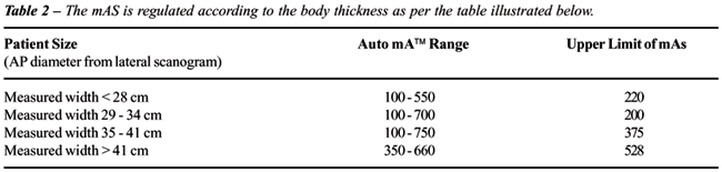 to the body thickness as illustrated in Table-2. Maximum mAs to be used