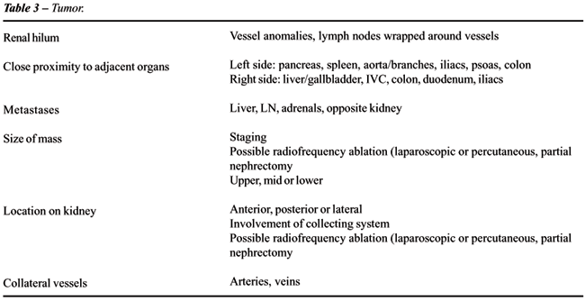abdominal wall muscles); tumor extension into the renal vein or IVC and