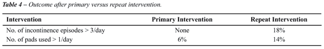 intervention in 60 (61.7%) patients with recurrent incontinence. The cough stress