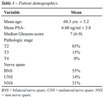 Materials and Methods: Radical prostatectomy was performed in 100 patients. Twenty