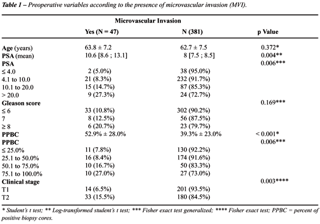 score, MVI was related to all clinical and pathologic features of RP specimens.