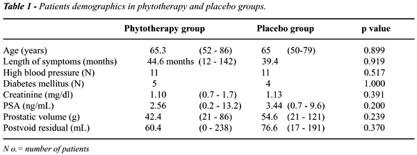 years, presenting urinary symptoms assessed by the International Prostatic