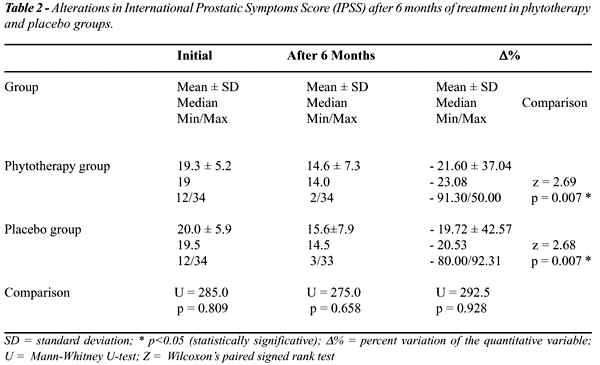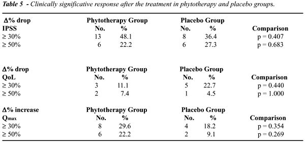 between the phytotherapic combination and placebo groups. Percent IPSS