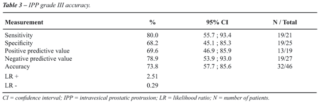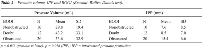 measurement of intravesical protrusion of the prostate (IPP) are used