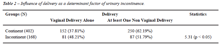 UI prevalence and risk factors to develop UI in women who lived in Botucatu,